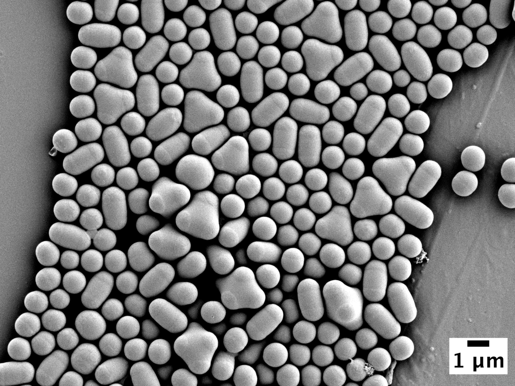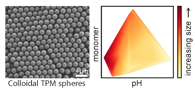 we systematically studied a method to synthesize monodisperse, micrometer-sized spheres from 3-(trimethoxysilyl)propyl methacrylate (TPM) in a benchtop experiment. Their ease of preparation, smoothness, and physical properties provide distinct advantages over other widely employed materials such as silica, polystyrene, and poly(methyl methacrylate)